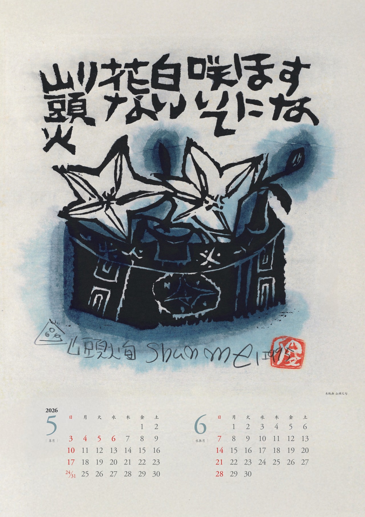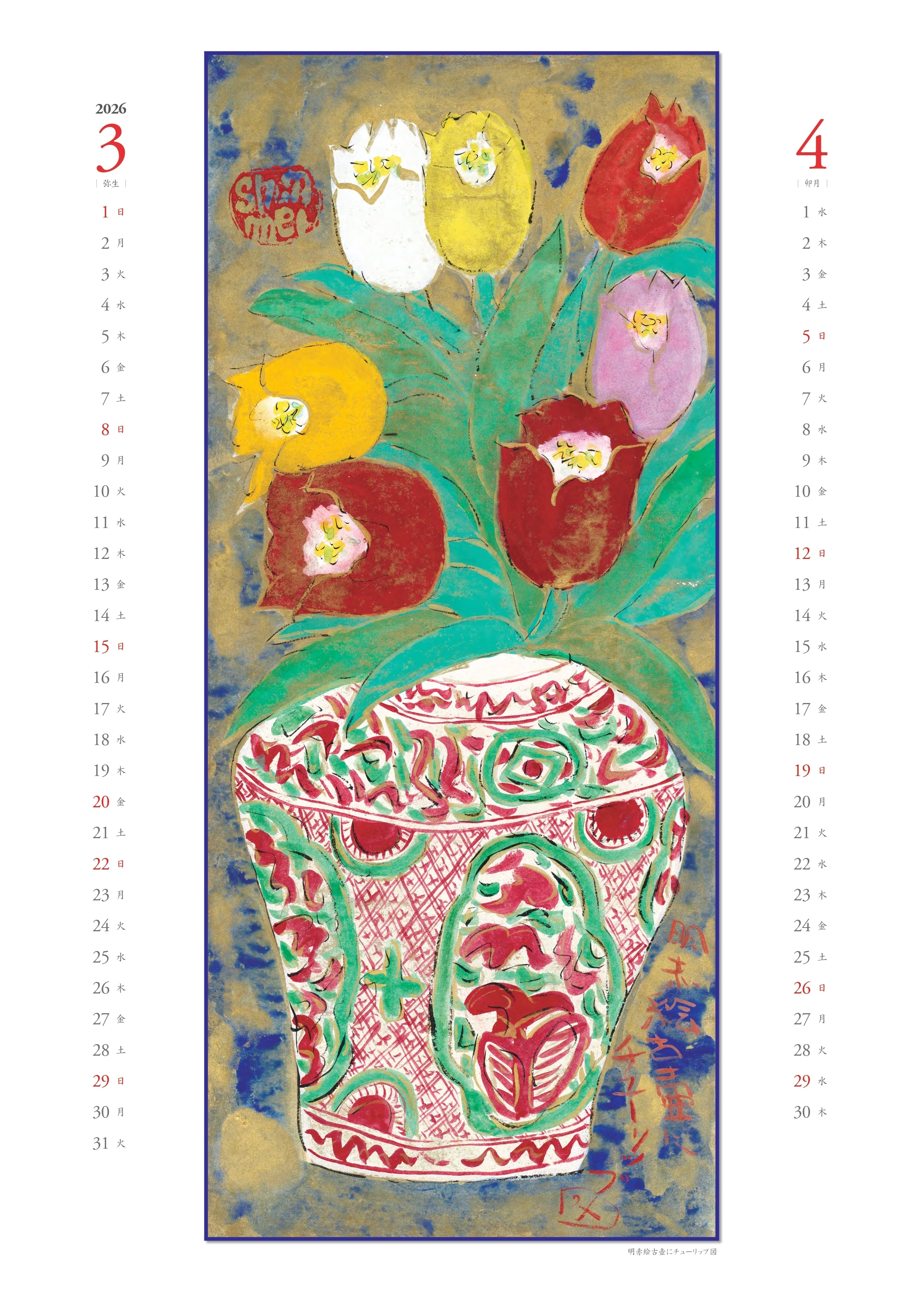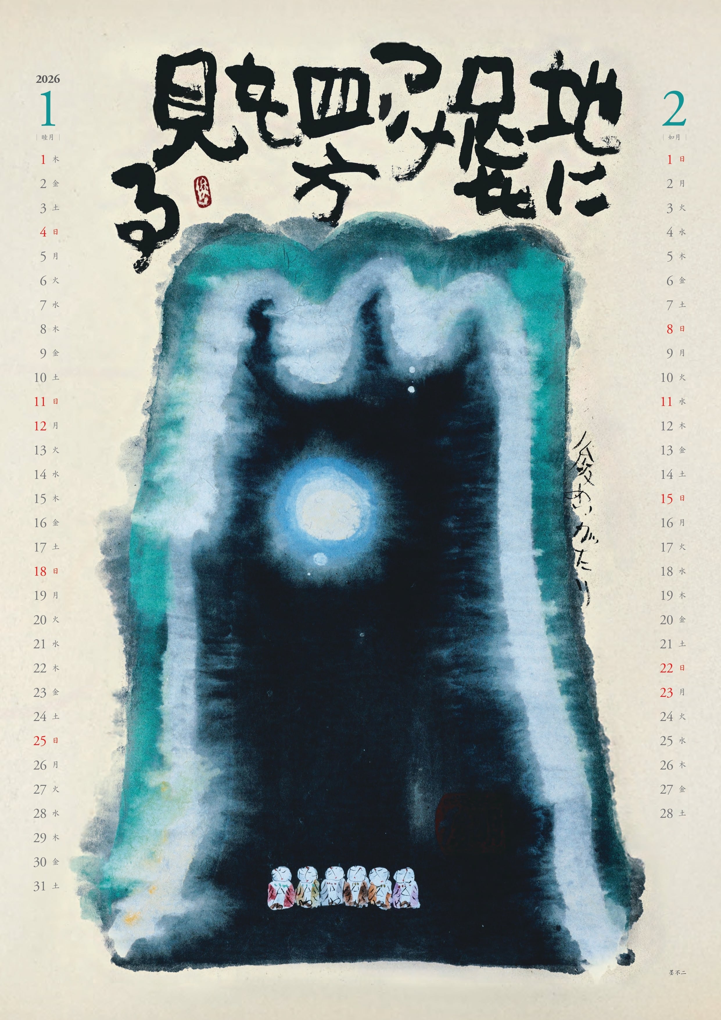 午年となる2026年の表紙には俊明が好んで描いた中国唐時代の彩陶「唐三彩」の軽快なスケッチを採用し、各月には墨彩詩書画・水彩画・木版画など季節に合わせた作品を掲載しております。皆様の日々の生活に癒しと彩りをお届けできましたら幸いです。